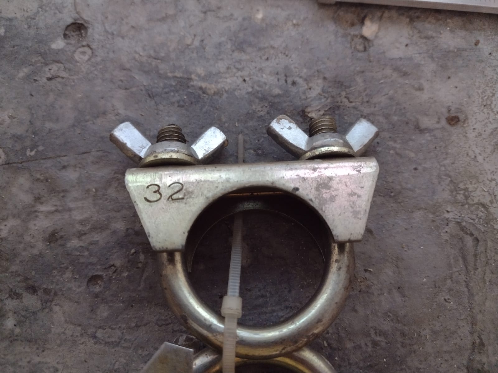 Poiché tali aste hanno lunghezza standard di 6 metri, troppo lunghe da maneggiare e trasportare, le ho fatte tagliare dal fornitore a 4 metri di lunghezza e quindi mi sono trovato 4 aste che, combinate tra loro mi permettono di iniziare il lavoro con l’asta più corta di 2 metri, poi gli infilo l’altra da 2 metri e arrivo a 4 metri, poi prendo l’asta da 4 metri, allungando quella interna arrivo a 8 metri. Per avere un bloccaggio affidabile tra le 2 aste ho usato un morsetto in uso per fissare le marmitte della auto.